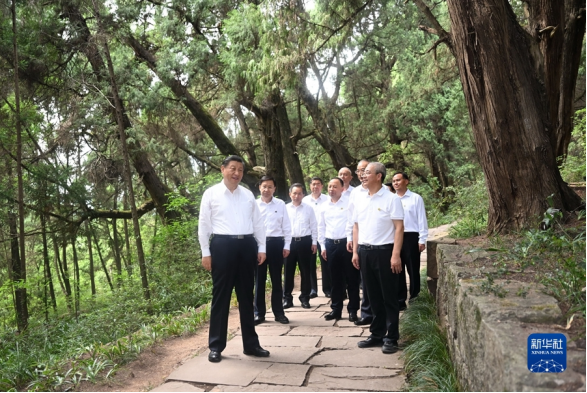 7月25日至27日,中共中央总书记、国家主席、中央军委主席习近平在四川考察。这是25日下午,习近平在广元市剑阁县翠云廊考察。新华社记者 谢环驰 摄